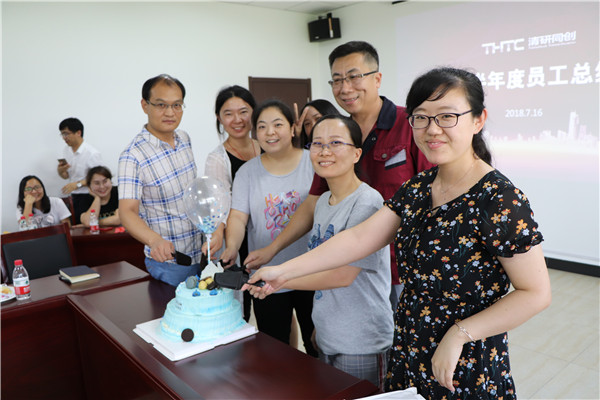 会议的最后,全体员工为第二季度(4-6月)过生日的员工庆生,至此,本次2018年半年度员工大会圆满结束。