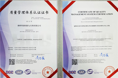 清研同创机器人通过ISO9001国际质量管理体系认证2018-05-04近日,清研同创机器人(天津)有限公司通过了新世纪检验认证股份有公司ISO9001质量管理体系认证,正式获得ISO9001国际质量管理体系认证证书,认证范围是工业机器人及辅助设备研发、制造和技术服务。 自公司...查看更多 > -